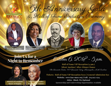 The KAA-MaCC Hall of Fame celebrates outstanding achievements of African Americans who live in and/or are from Cabarrus and Rowan Counties, recognizing individuals who have made a lasting impact in education, civic leadership, business, the arts, faith-based service, and community advocacy.